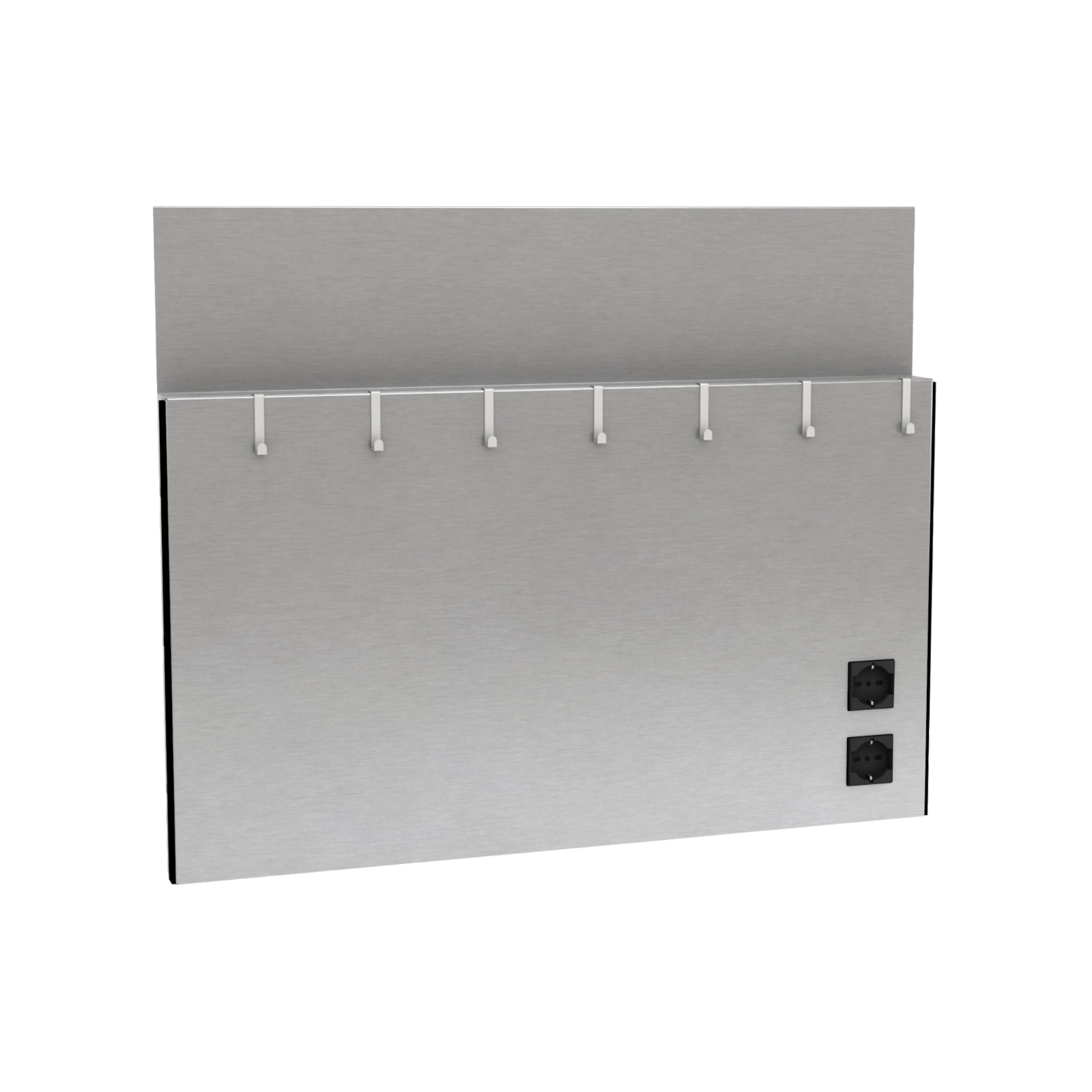 - Il pannello inferiore della parete è dotato di n°2 VANI PREDISPOSTI per l’installazione di una COPPIA di PRESE ELETTRICHE (non comprese nell’imballo). E’ necessario abbinare alla parete inox il KIT di PRESE ELETTRICHE nella versione adatta alla zona di destinazione (USA, EU o UK).
