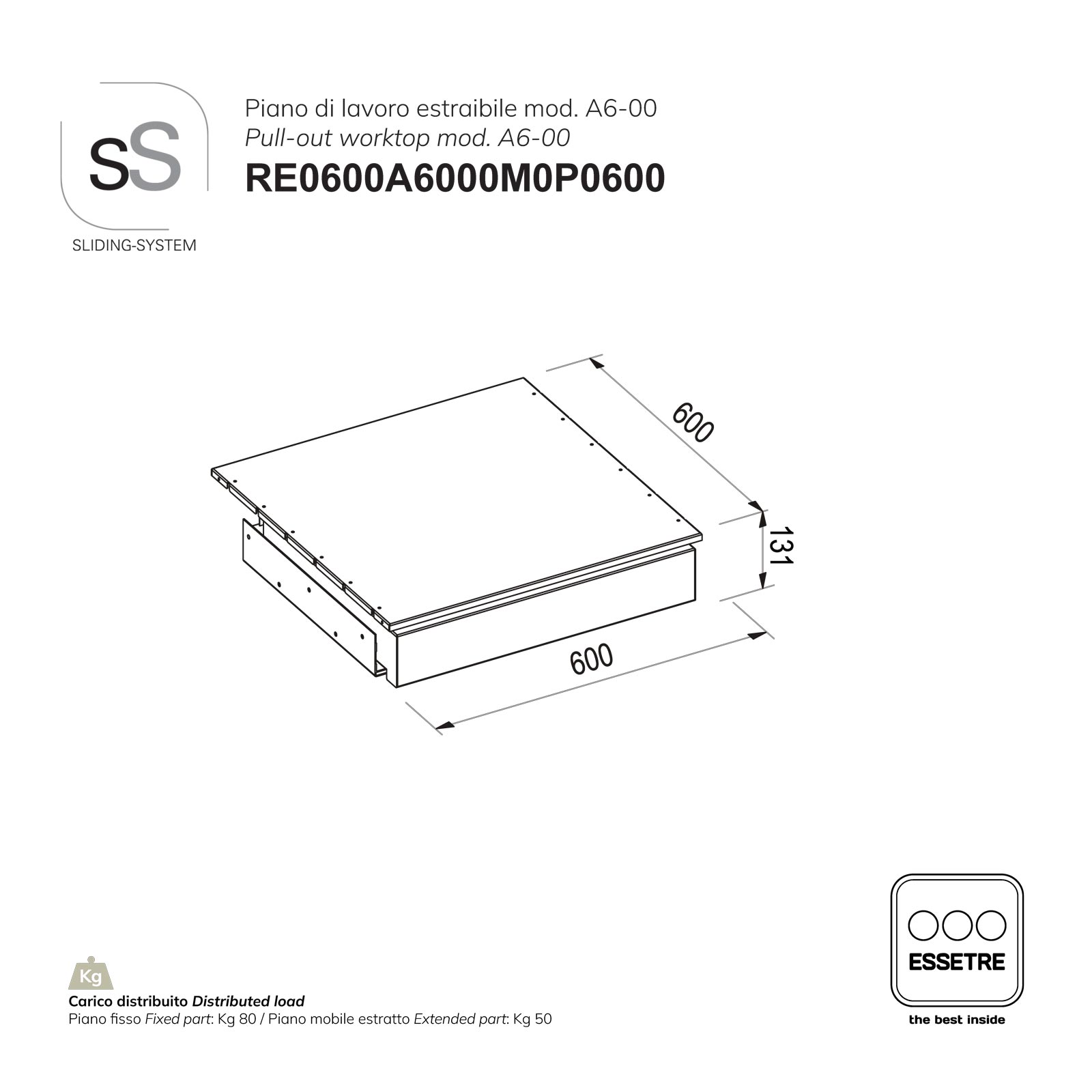PIANO DI LAVORO ESTRAIBILE MOD. A6-00 PER ARMADIO 600 mm