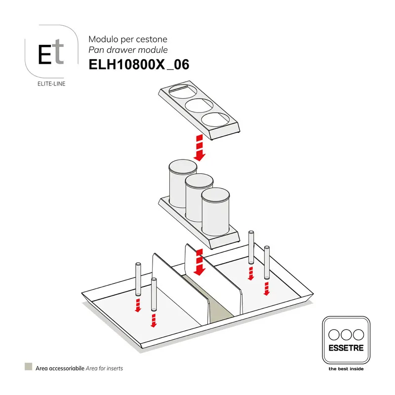 - Accessoriabile con il set di INSERTI ELITE-LINE.