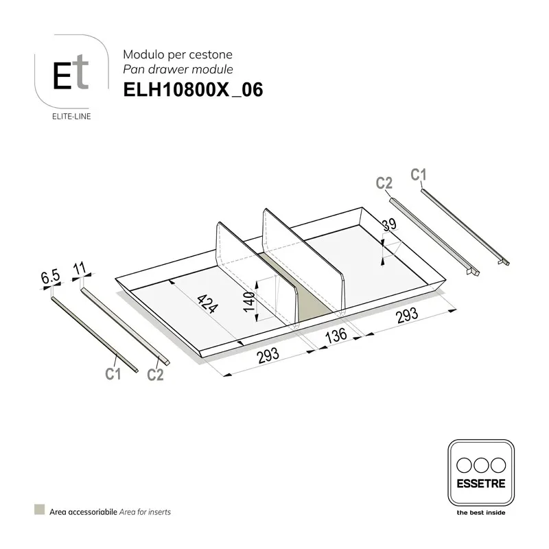 - Lโarticolo รจ accessoriabile con il set di INSERTI ELITE-LINE.