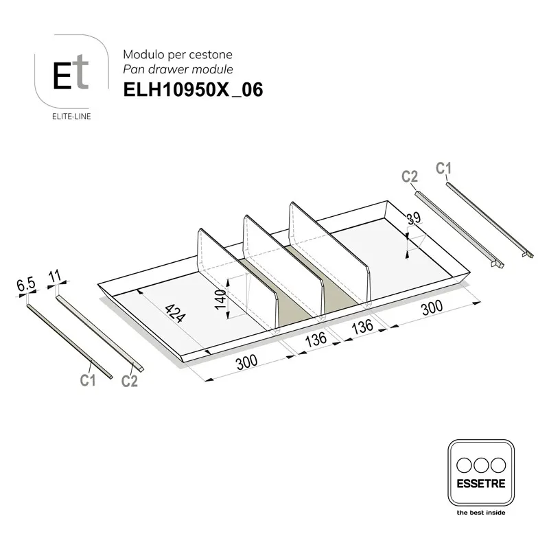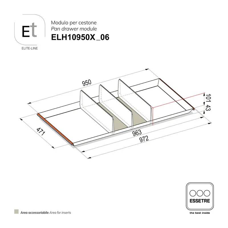 - Accessoriabile con il set di INSERTI ELITE-LINE.
