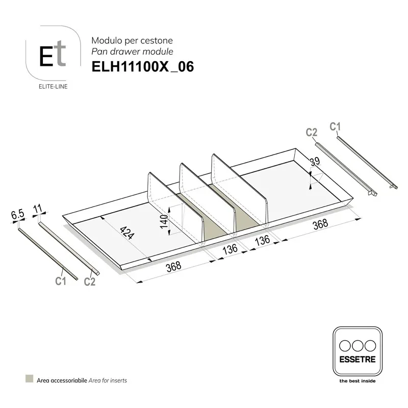 • Accessoriabile con il set di INSERTI ELITE-LINE.