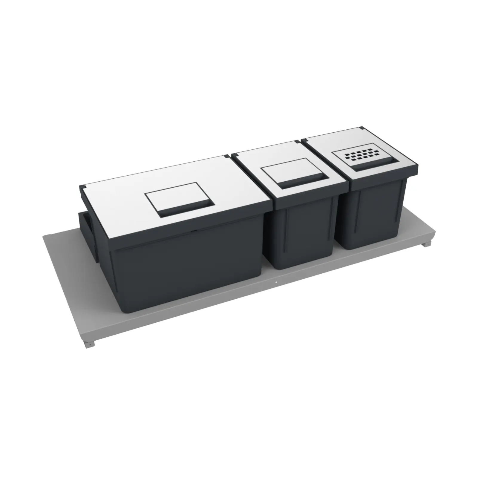 - Lโarticolo si compone di un SUPPORTO in LAMIERA VERNICIATA con TASCHE SAGOMATE sulla forma dei contenitori. Le tasche sono disegnate per alloggiare perfettamente i contenitori sul supporto e per garantire la stabilitร durante le fasi di apertura e chiusura del cestone.