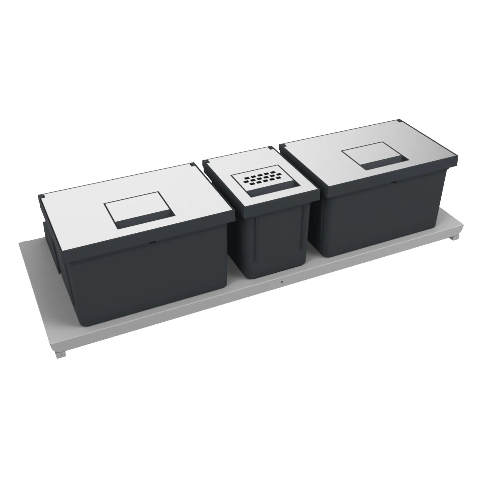 - Lโarticolo si compone di un SUPPORTO in LAMIERA VERNICIATA con TASCHE SAGOMATE sulla forma dei contenitori. Le tasche sono disegnate per alloggiare perfettamente i contenitori sul supporto e per garantire la stabilitร durante le fasi di apertura e chiusura del cestone.