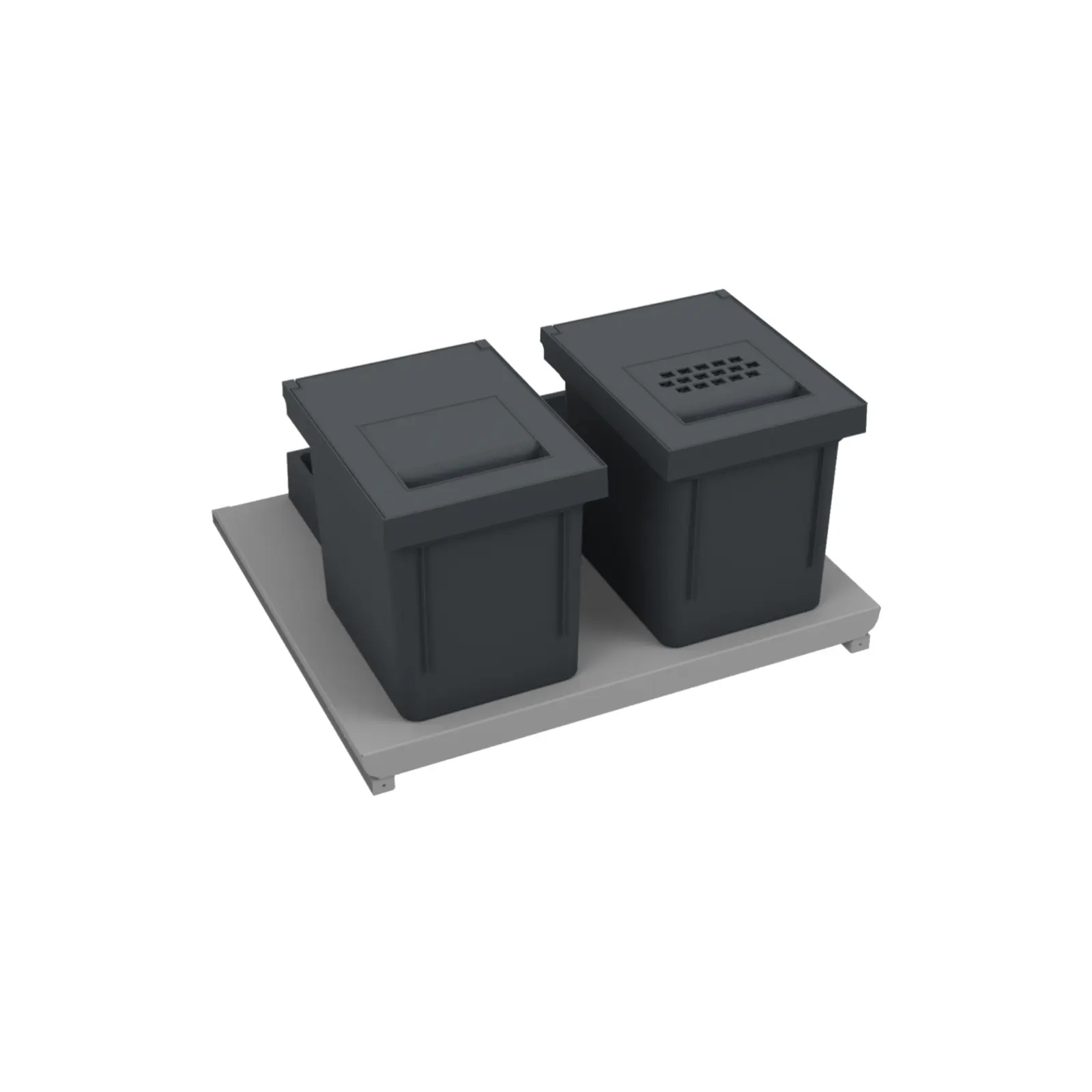 - Lโarticolo si compone di un SUPPORTO in LAMIERA VERNICIATA con TASCHE SAGOMATE sulla forma dei contenitori. Le tasche sono disegnate per alloggiare perfettamente i contenitori sul supporto e per garantire la stabilitร durante le fasi di apertura e chiusura del cestone.