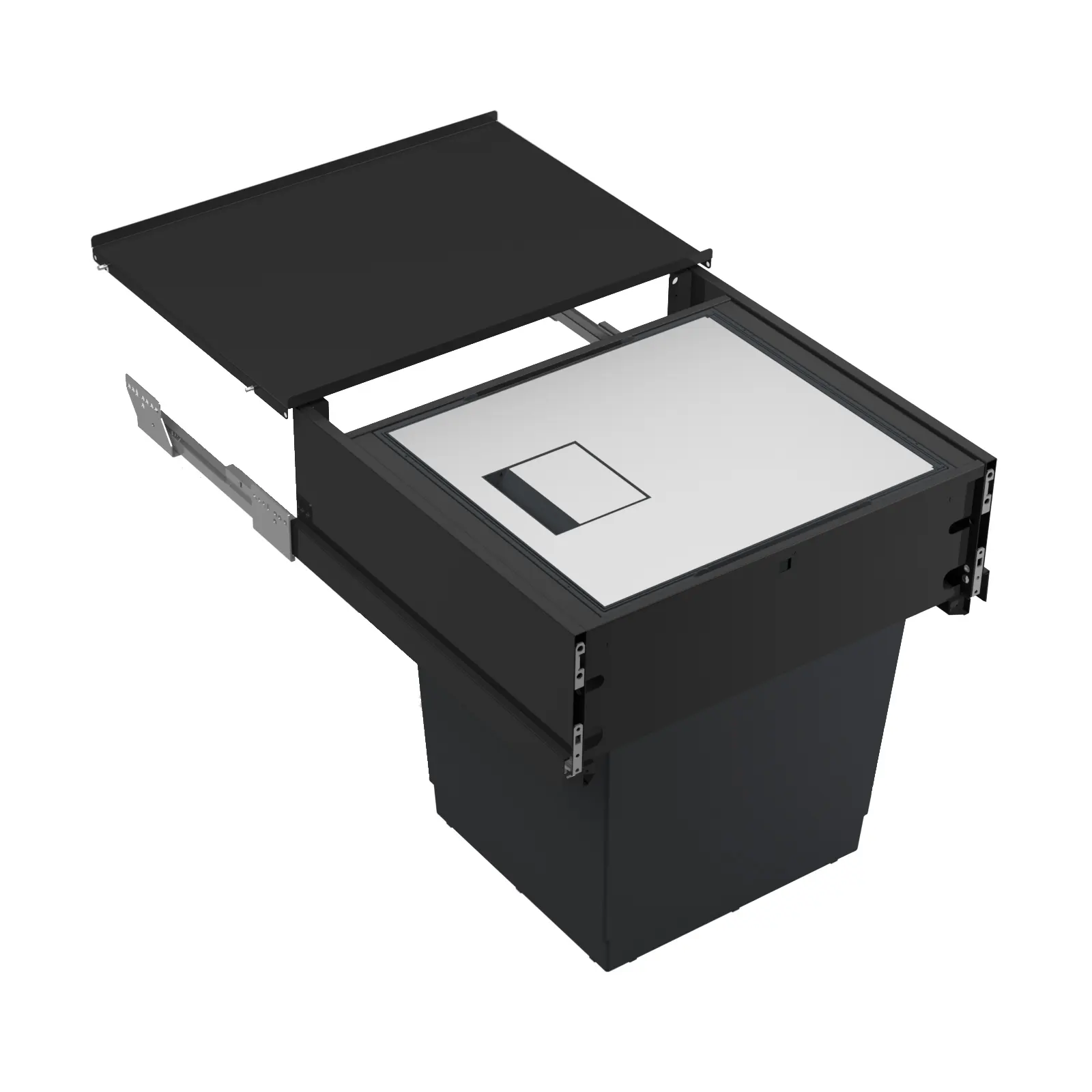 - PIANO FISSO in metallo verniciato per creare spazi d’appoggio al di sopra della pattumiera.